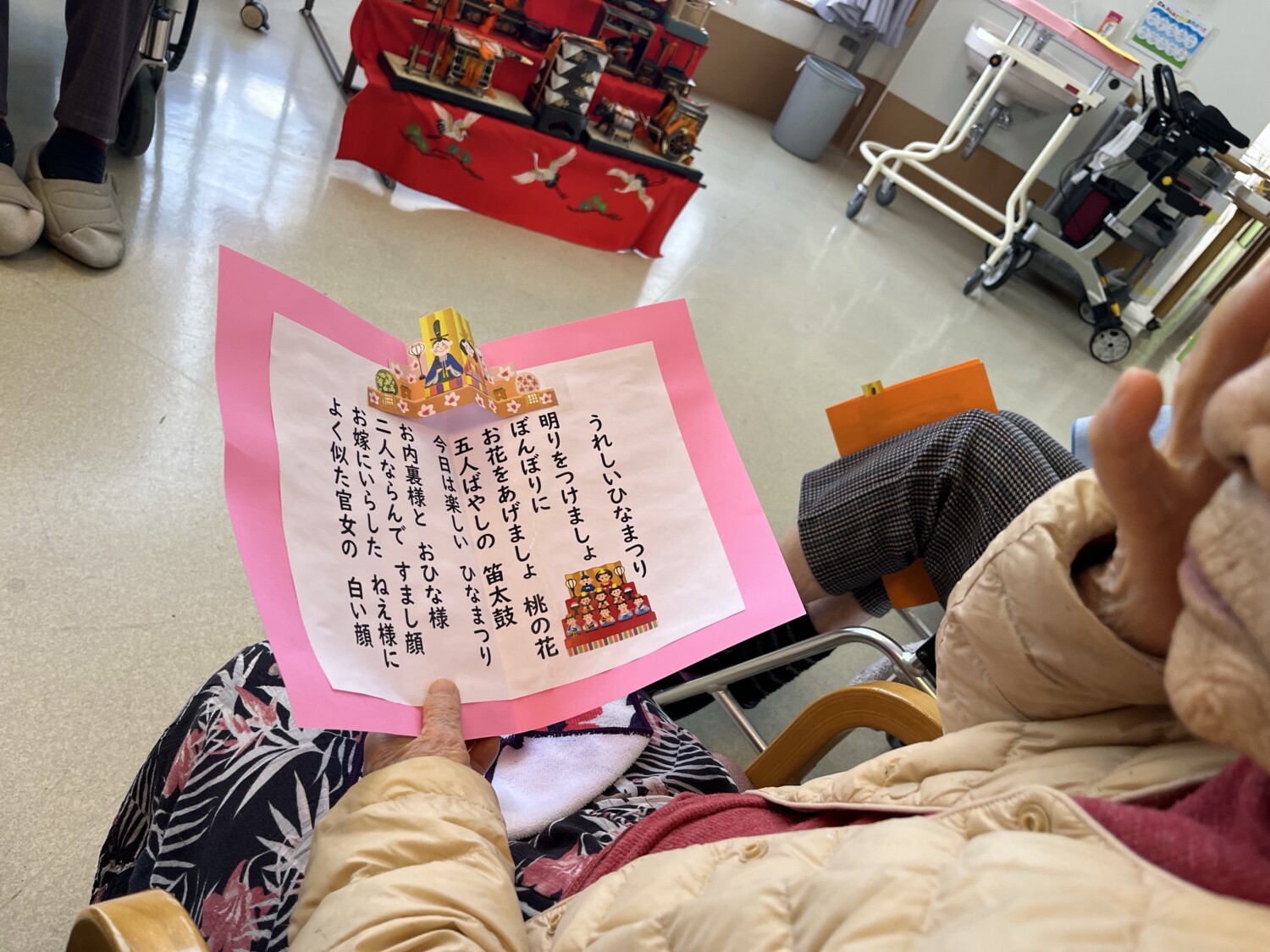 立派な雛壇のある陽当たりのいいフロアで桃の節句をお祝いし春が近づいていることを感じた1日でした。
